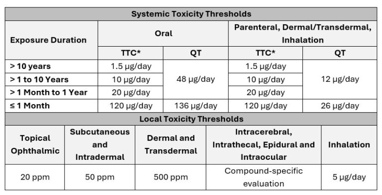 *Note: For ICH S9 (anti-cancer) products, the TTC is not applicable; the SCT is defined by the QT.